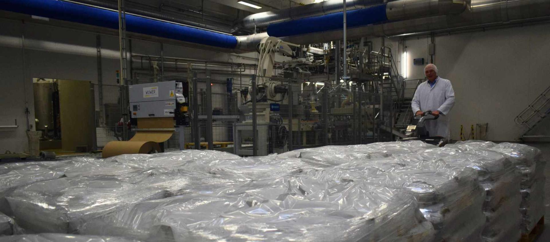 - Produktionsapparaterne er opført i haller med klimaanlæg, som sørger for, at temperatur og luftfugtighed altid er stabile. Dermed undgås sæsonbestemte udfordringer som statisk elektricitet og sammenklumpning.