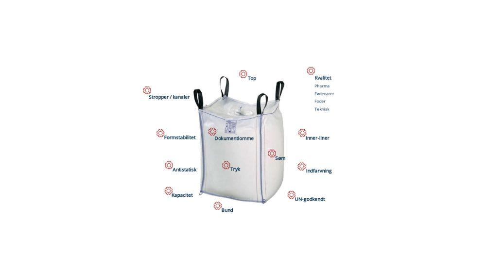Vi tilbyder en nøje udvalgt række af big bags, som skræddersys efter jeres specifikke krav. Dette indebærer, at big bags altid leveres i den konstruktion, der bedst passer til jer. Vi er overbeviste om, at vi sammen kan finde den rette konstruktion og variant, der matcher jeres slutprodukt og produktionsproces bedst muligt.
